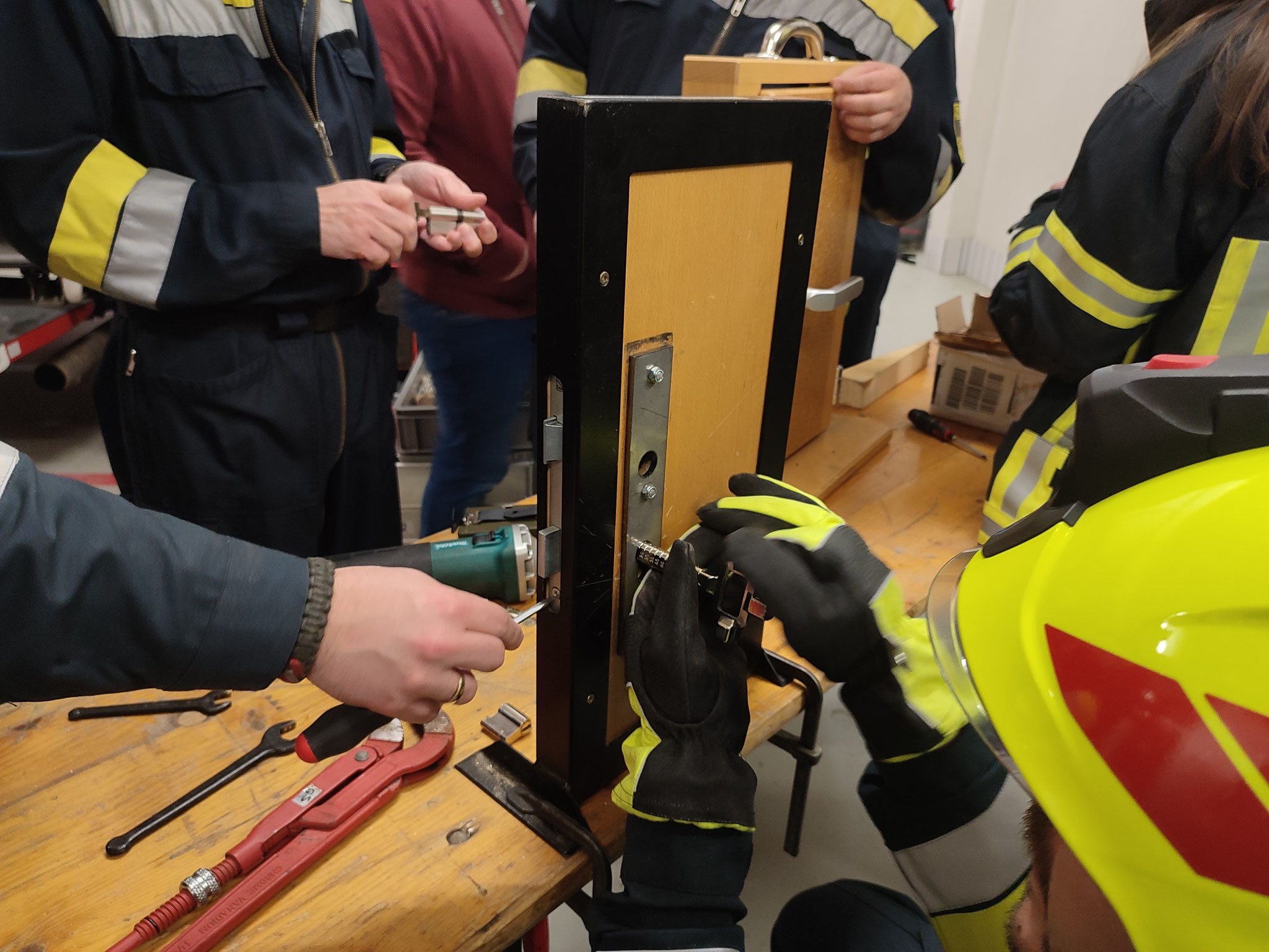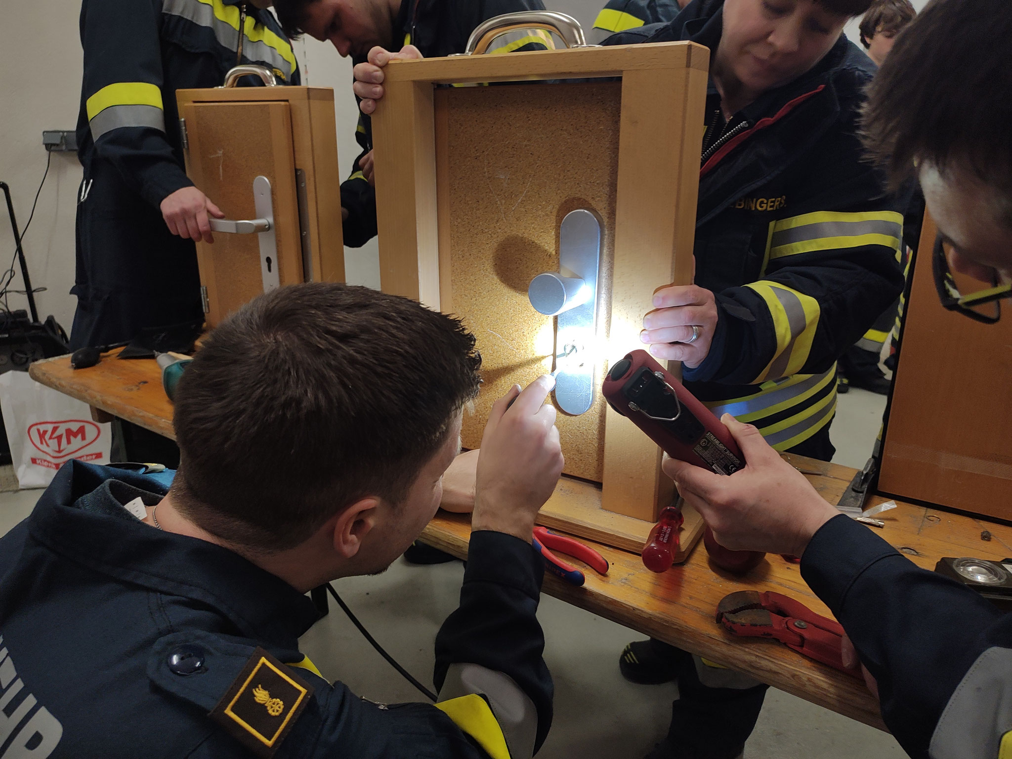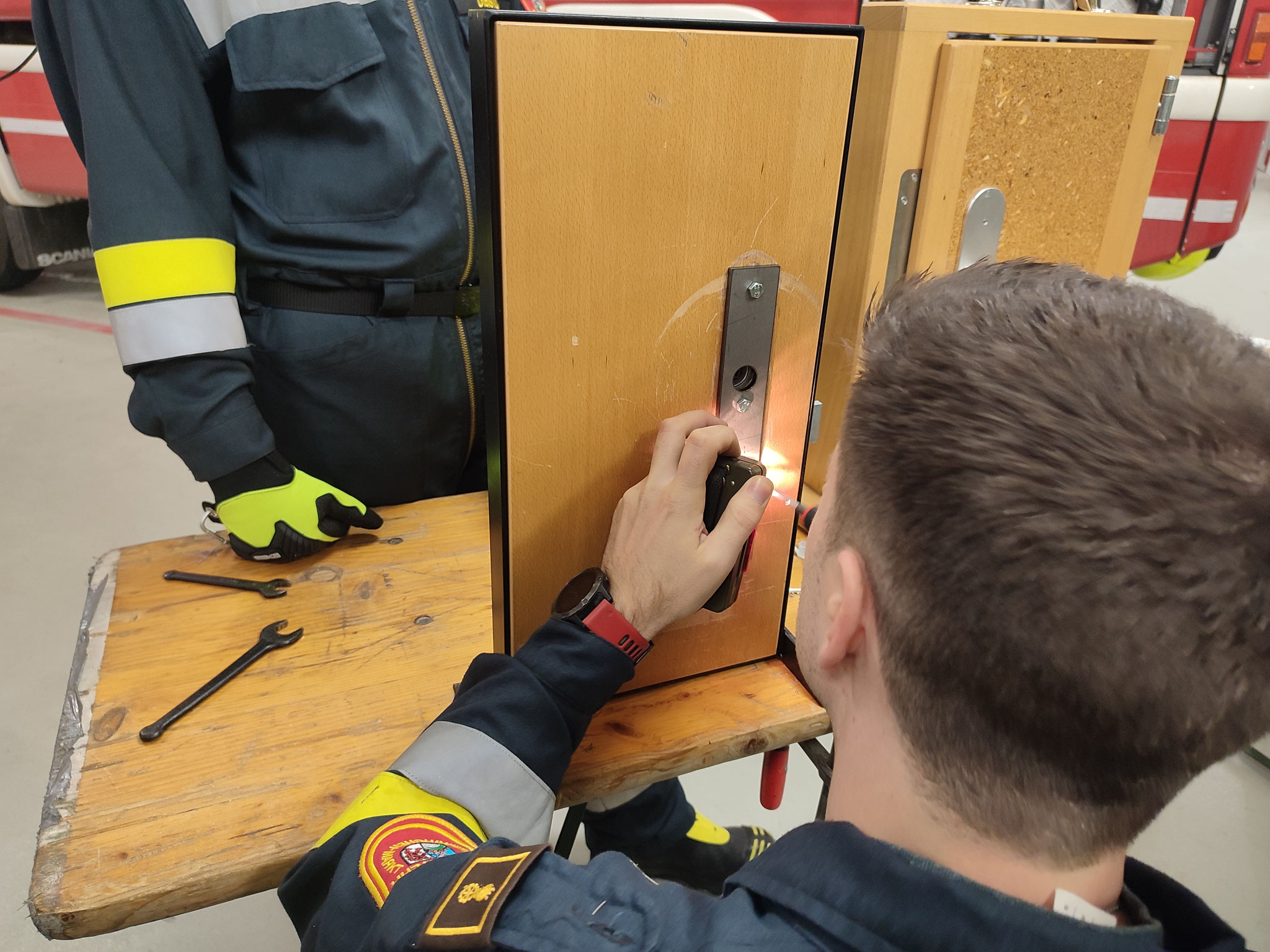 Am 26.02. stand bei uns eine Schulung zur Tür- und Fensteröffnung an. Neben dem Öffnen eines gekippten Fensters lernten wir auch das Aufbohren und Aufbrechen eines Schließzylinders.