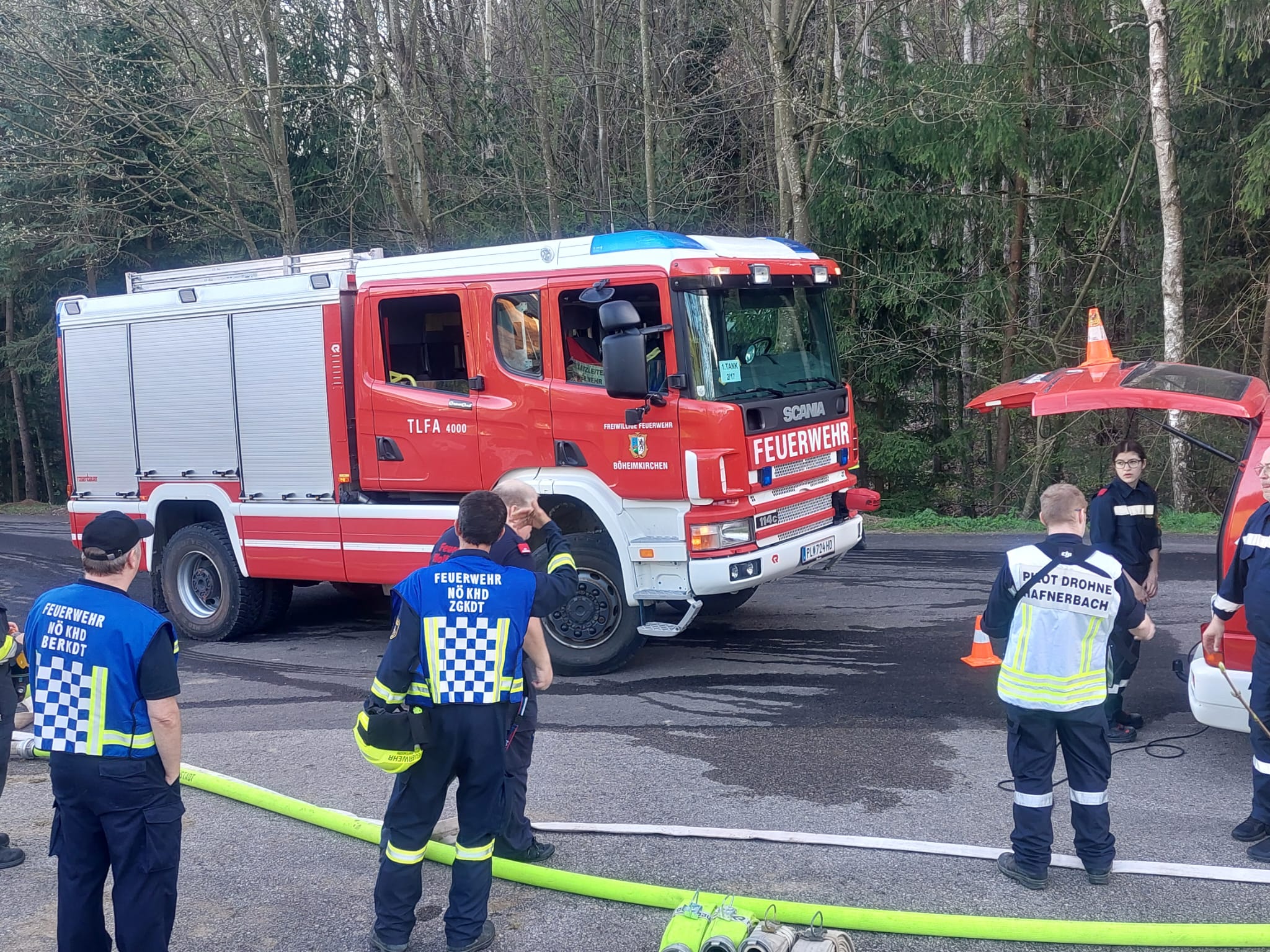 Übungsszenario war ein Waldbrand, der sich auf einen benachbarten Wald auszubreiten drohte.