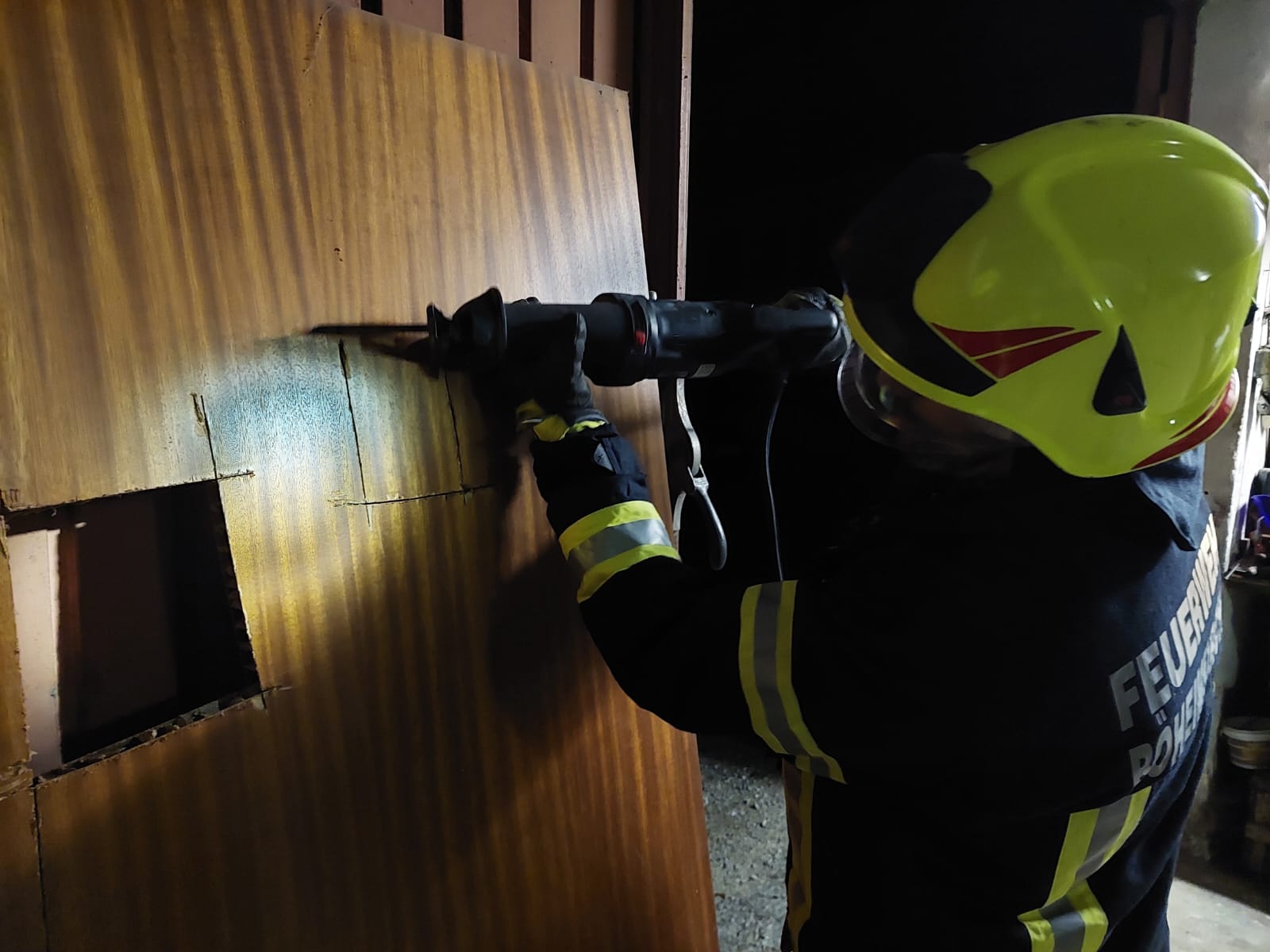 Die zweite Übung fand intern statt und widmete sich dem Thema „Türöffnung“. Dabei lernten wir einige Techniken, wie man mit den verschiedensten Werkzeugen wie der Feuerwehraxt, dem Brecheisen