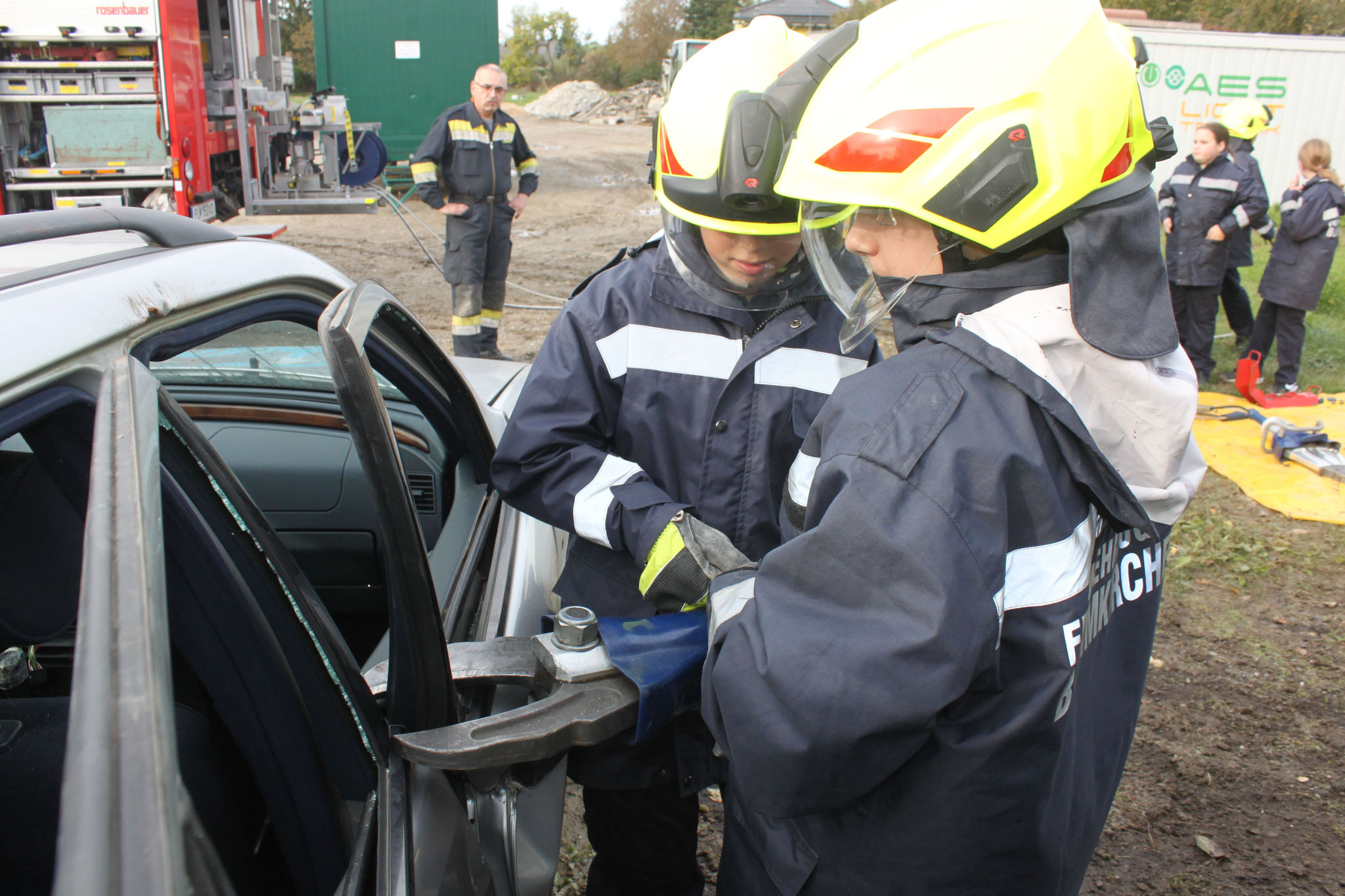 eine technische Einsatzübung. Dabei lernten wir, wie Fahrzeuge korrekt abgesichert, und Menschen schnell und sicher gerettet werden.