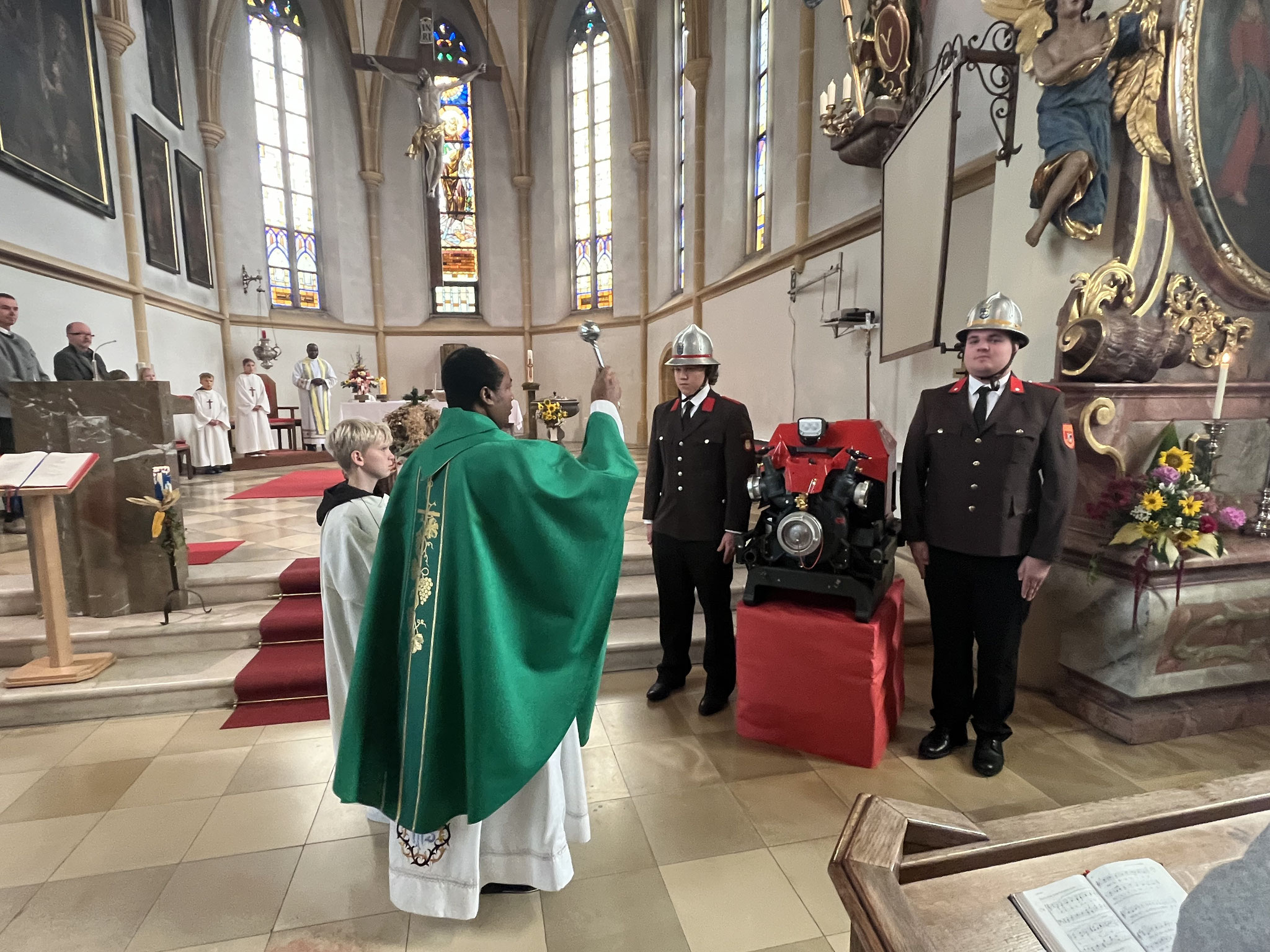 Am Sonntag 28. September wurde im Rahmen der Erntedankfeier unsere neue Tragkraftspritze FOX (TS) von unserem Herrn Pfarrer Kingsley
