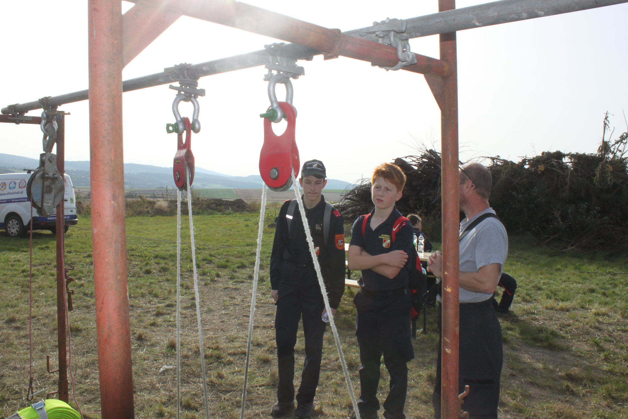 uns dankenswerter weise vom Roten Kreuz St. Pölten ausborgen durften, auf. Anschließend nutzten wir den hydraulischen Rettungssatz für