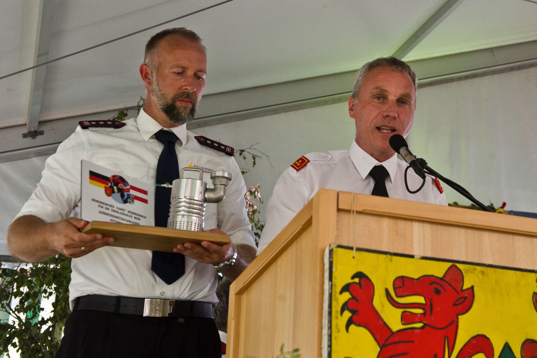 Gelegenheit offiziell Danke zu sagen und die Feuerwehrkameraden und den Bürgermeister auszuzeichnen. Die Hilfsaktion war ganz spontan