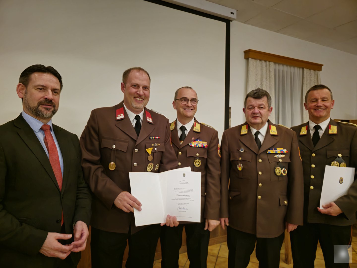 Überreicht wurden die Auszeichnungen vom Abschnittskommandantenstv. Leo Stiefsohn, Kdt. Karl Streimelweger, Kdt. Stellvertreter Johannes