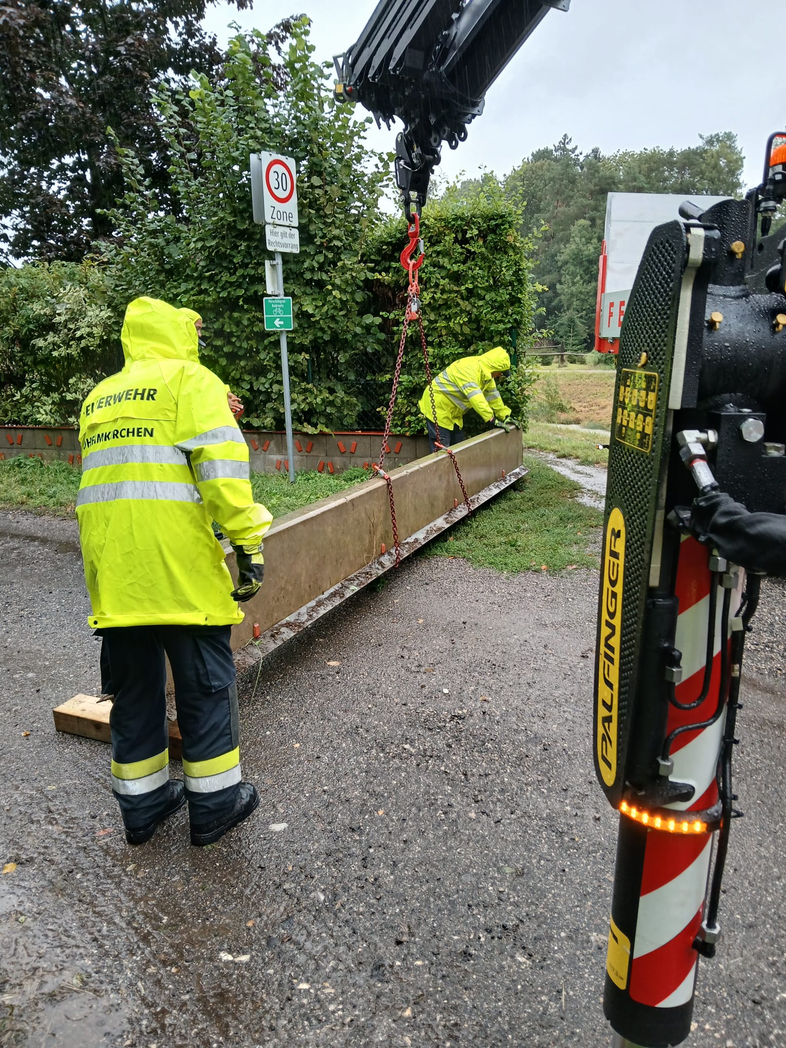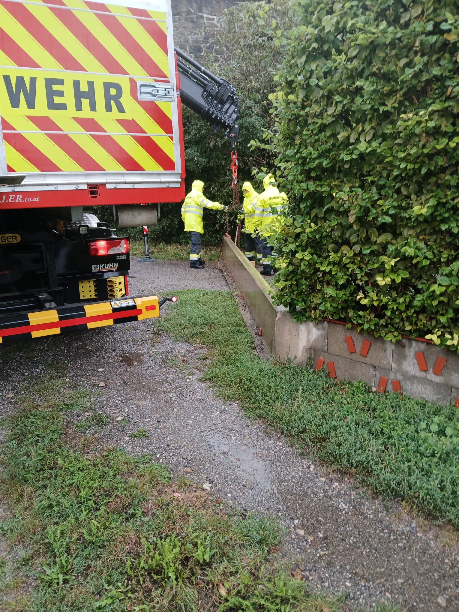 Bürgermeister aus der deutschen Partnergemeinde Böhmenkirch mit 2 Feuerwehrfahrzeugen anrücken und tagelang in Böheimkirchen