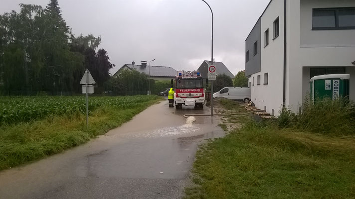 Am Montagabend, den 20.06.2016 wurden wir zu mehreren Unwettereinsätzen gerufen. Unser TLF rückte gemeinsam mit der FF Ausserkasten-Furth und der FF Untergrafendorf nach Plosdorf aus. Nach der Lageerkundung stand fest, dass mehrere Häuser unter Wasser standen. Nach der Fertigstellung einer Schutzwand, konnten wir mit den Auspumparbeiten beginnen. Nach Absprache mit dem Hausbesitzer stellte sich heraus, dass sich mehrere Öltanks und ein Fahrzeug im Keller befanden. Es gelang das Wasser rasch abzupumpen, sodass ein Ölaustritt verhindert werden konnte.
