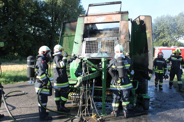 Nach geraumer Zeit hatten die Feuerwehren gemeinsam den Brand unter Kontrolle. Etwa eine Stunde nach Eintreffen konnte "Brand aus" gegeben werden.