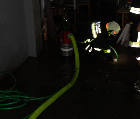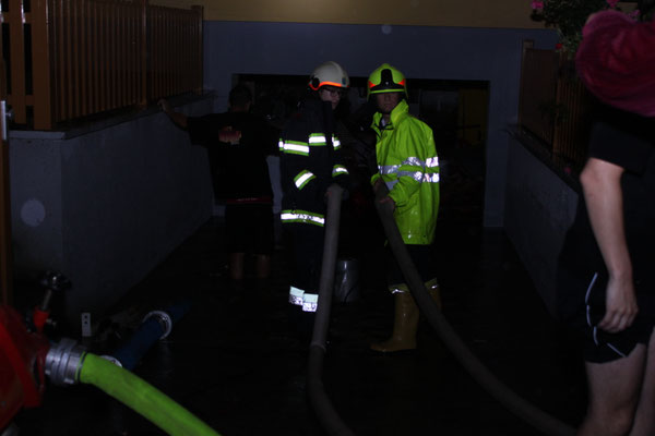 Mittels Unterwasserpumpe und Nasssauger konnten wir das Gebäude nach rund 4 Stunden von Schmutz und Wasser gänzlich befreien.
