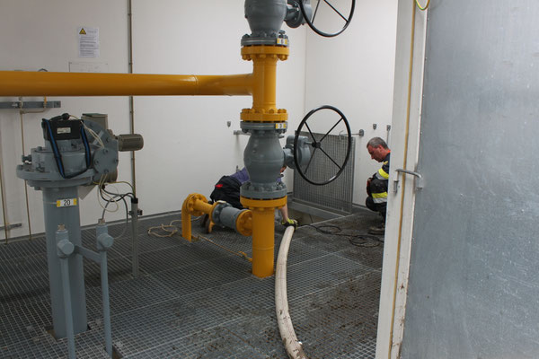 Bei der Gasschieberstation in Bauland drang aufgrund der starken Regenfälle Wasser in das Gebäude. Unsere Aufgabe bestand darin, das Gebäude von Schmutzwasser und Schlamm zu befreien.