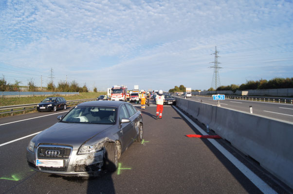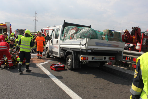 Nach der Lageerkundung stand fest, es handelt sich um einen Zusammenstoß von fünf Fahrzeugen. Nachdem die verletzten Personen von Notarzt, sowie Rettungsdienst versorgt wurden und die Exekutive