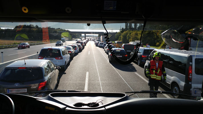 Da die Rettungsgasse nur stellenweise funktionierte, dauerte die Anfahrt dementsprechend lange. Während der Anfahrt konnte allerdings von der BAZ (Bereichs Alarm Zentrale) St.Pölten Entwarnung