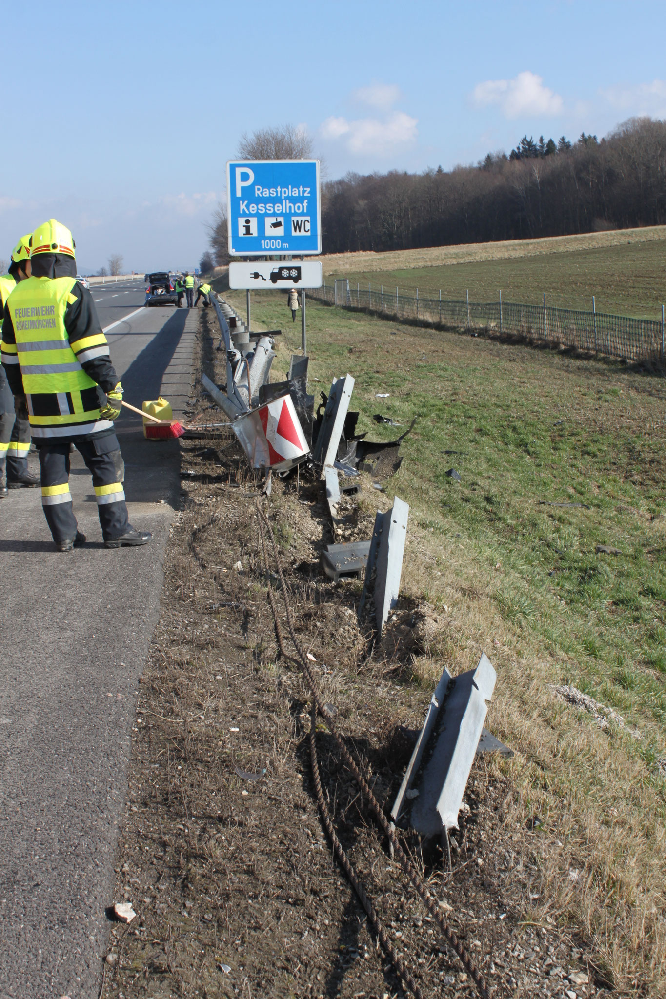 Brandschutz bereitgestellt. Die Aufgabe unserer Wehr bestand darin, eines der beiden Fahrzeuge von der Autobahn zu verbringen und gesichert abzustellen. Das zweite Fahrzeug wurde von der FF