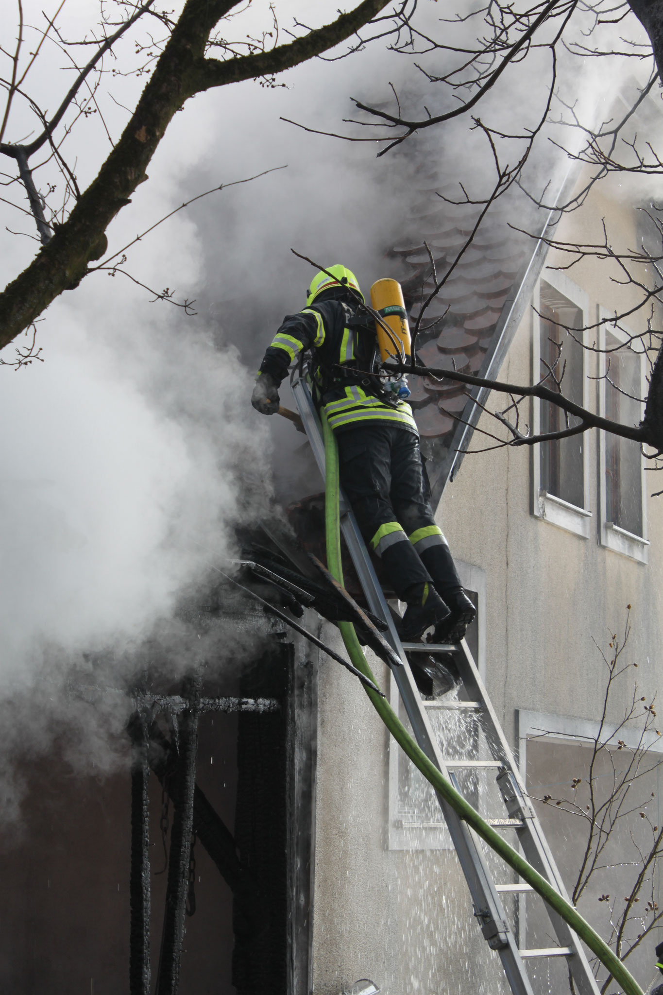 Um den Brand im Dachbereich unter Kontrolle bringen zu können, musste das Dach flächendeckend abgedeckt werden. Danach konnten die Löscharbeiten durchgeführt werden.
