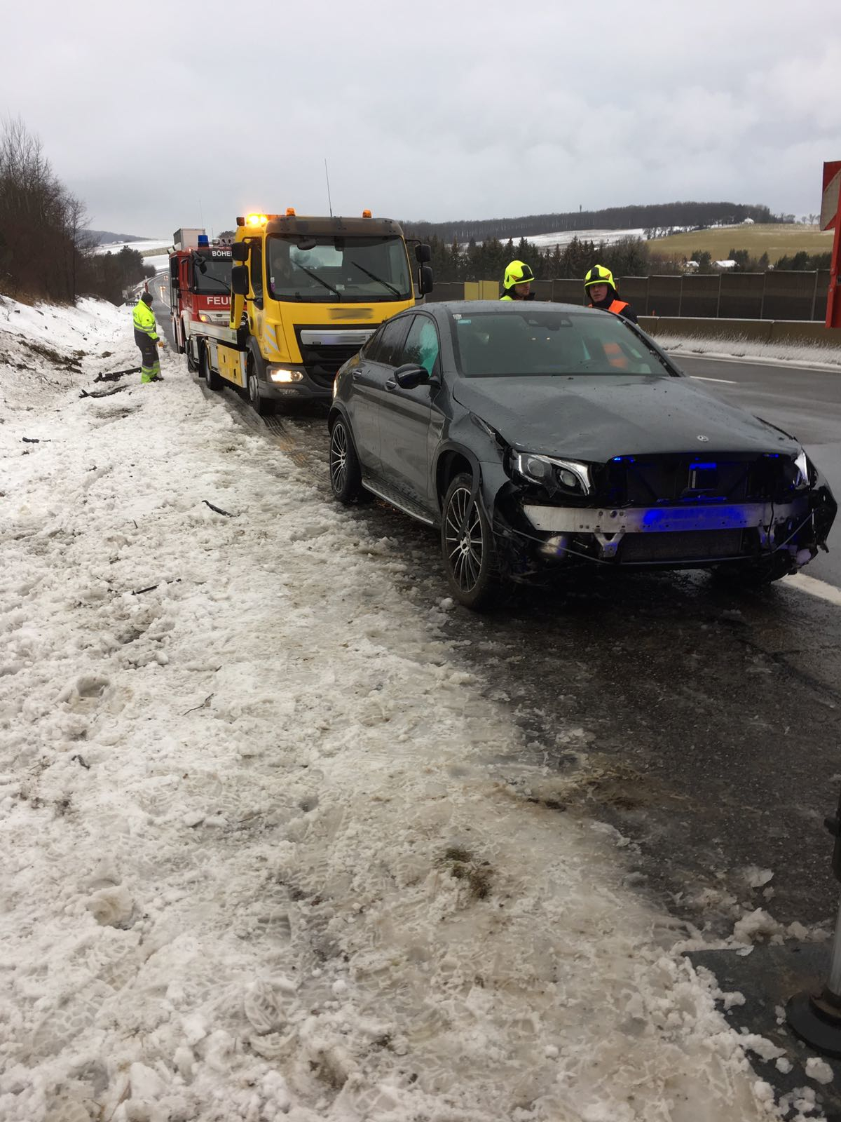 Ein Fahrzeug stand nach einem Verkehrsunfall fahruntüchtig quer über die Fahrbahn.