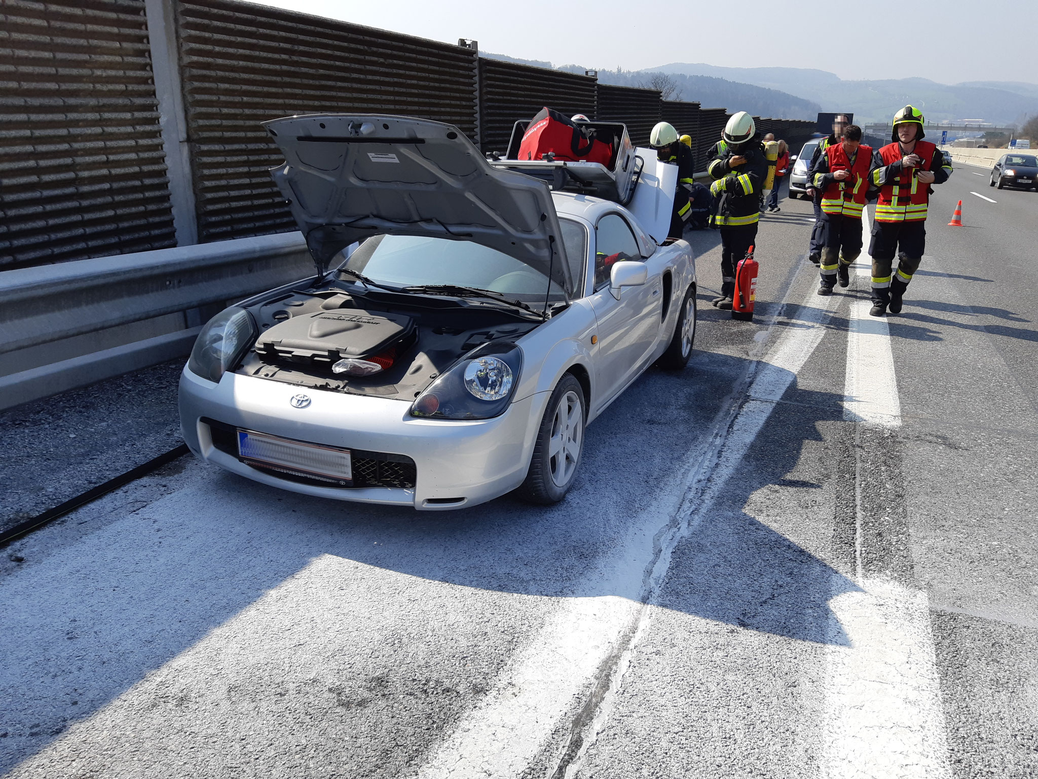 Am Sonntag, dem 24. März 2019, wurden wir um 11 Uhr 48 gemeinsam mit der FF Kirchstetten zu einem Fahrzeugbrand auf die Westautobahn in Fahrtrichtung Wien alarmiert.