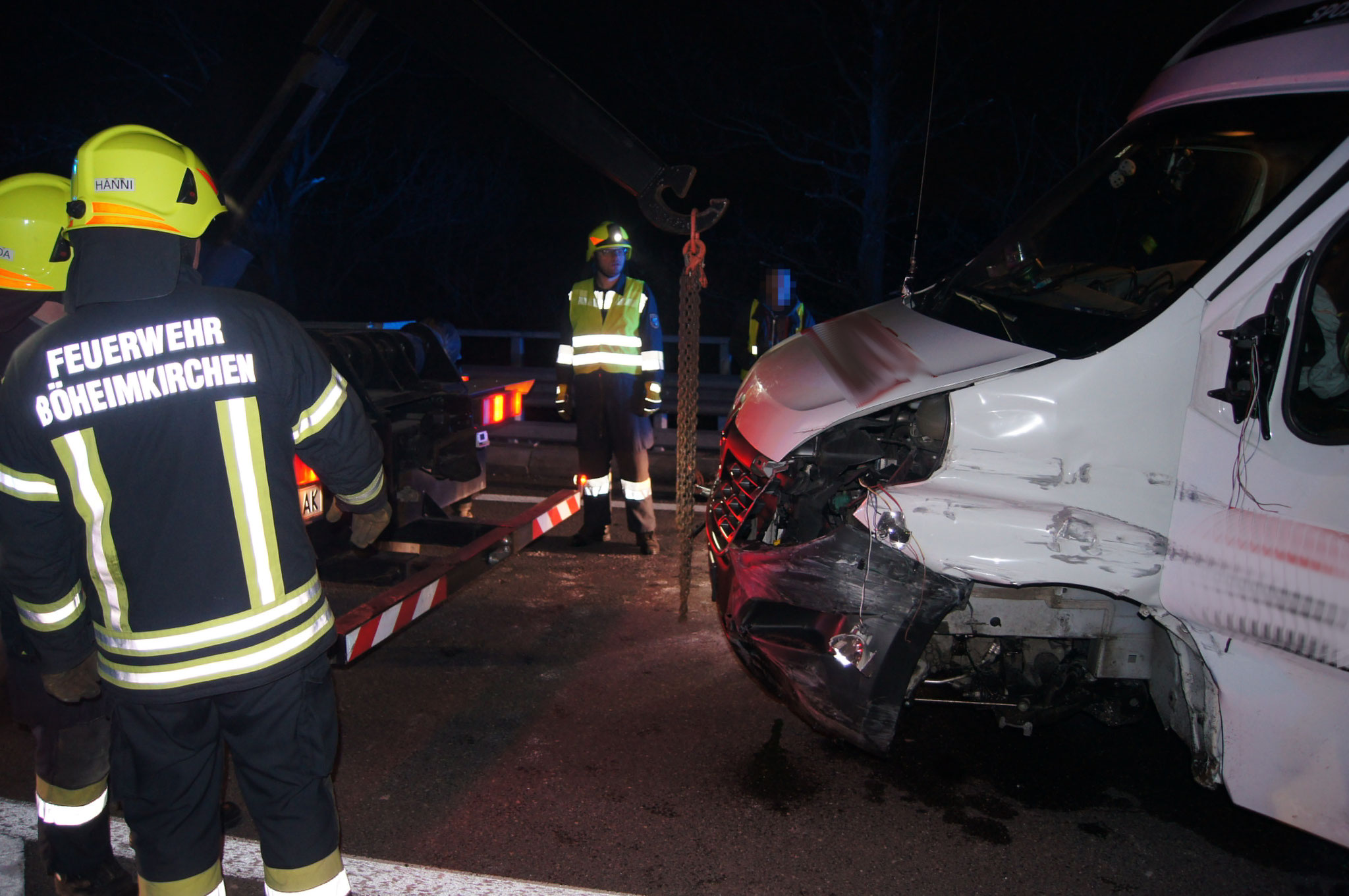 Die Aufgabe unserer Wehr bestand darin, einen fahruntüchtigen Kleintransporter von der Fahrbahn zu verbringen. Da die vordere Achse zu stark beschädigt war, musste der Transporter mithilfe