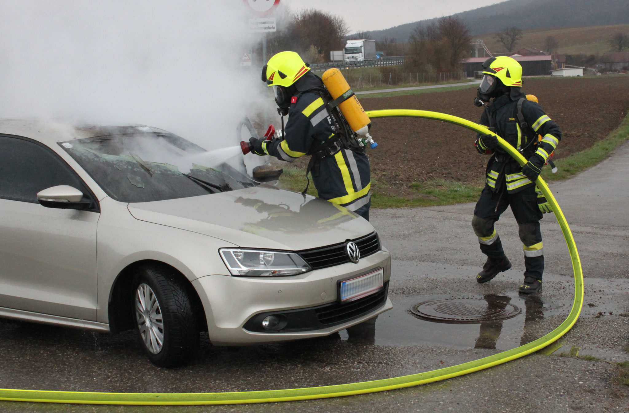 Der Brand konnte nach wenigen Minuten unter Kontrolle gebracht werden. Ein Eingreifen der weiteren Wehren war somit nicht notwendig. Das Fahrzeug wurde nach den Löscharbeiten auf dem nahe