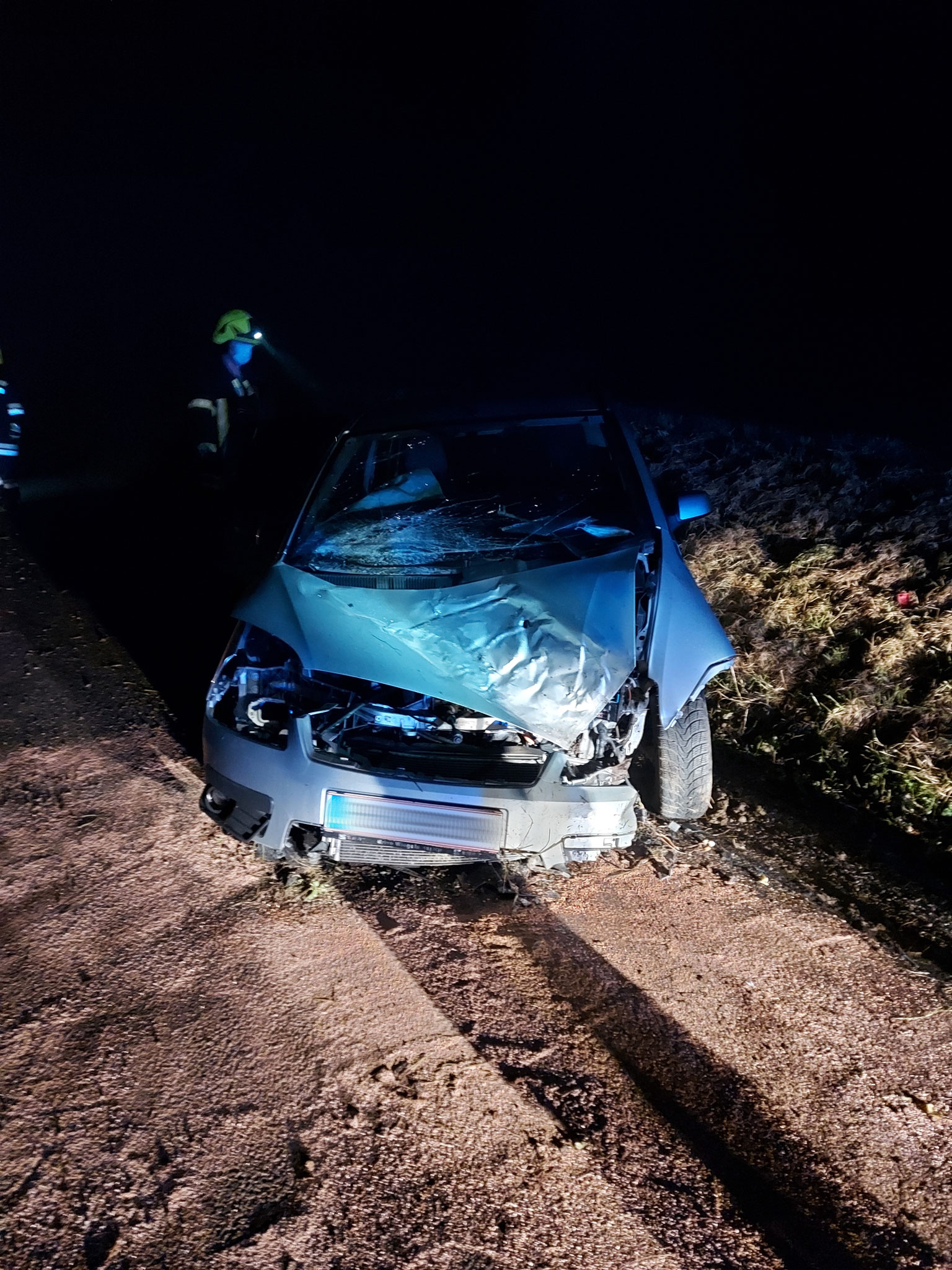 Ein PKW war nach dem Zusammenstoß mit einem Baum fahruntüchtig und musste von der Straße geborgen werden. Mithilfe unseres Wechselladefahrzeuges wurde das Fahrzeug von der Unfallstelle verbracht und gesichert abgestellt. Die ausgelaufenen Betriebsmittel wurden mittels Ölbinder gebunden.