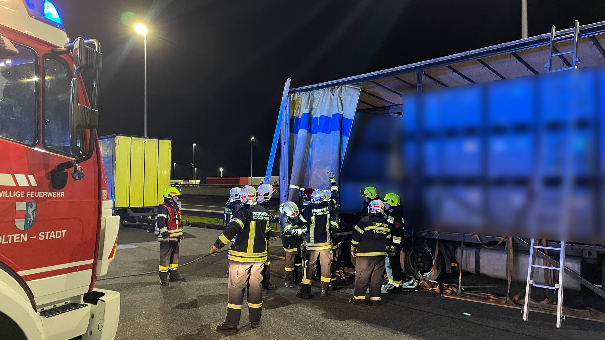 Böheimkirchen. Wenige Minuten später traf das Großtanklöschfahrzeug von St. Pölten ein und sicherte die Wasserversorgung auf der Autobahn.