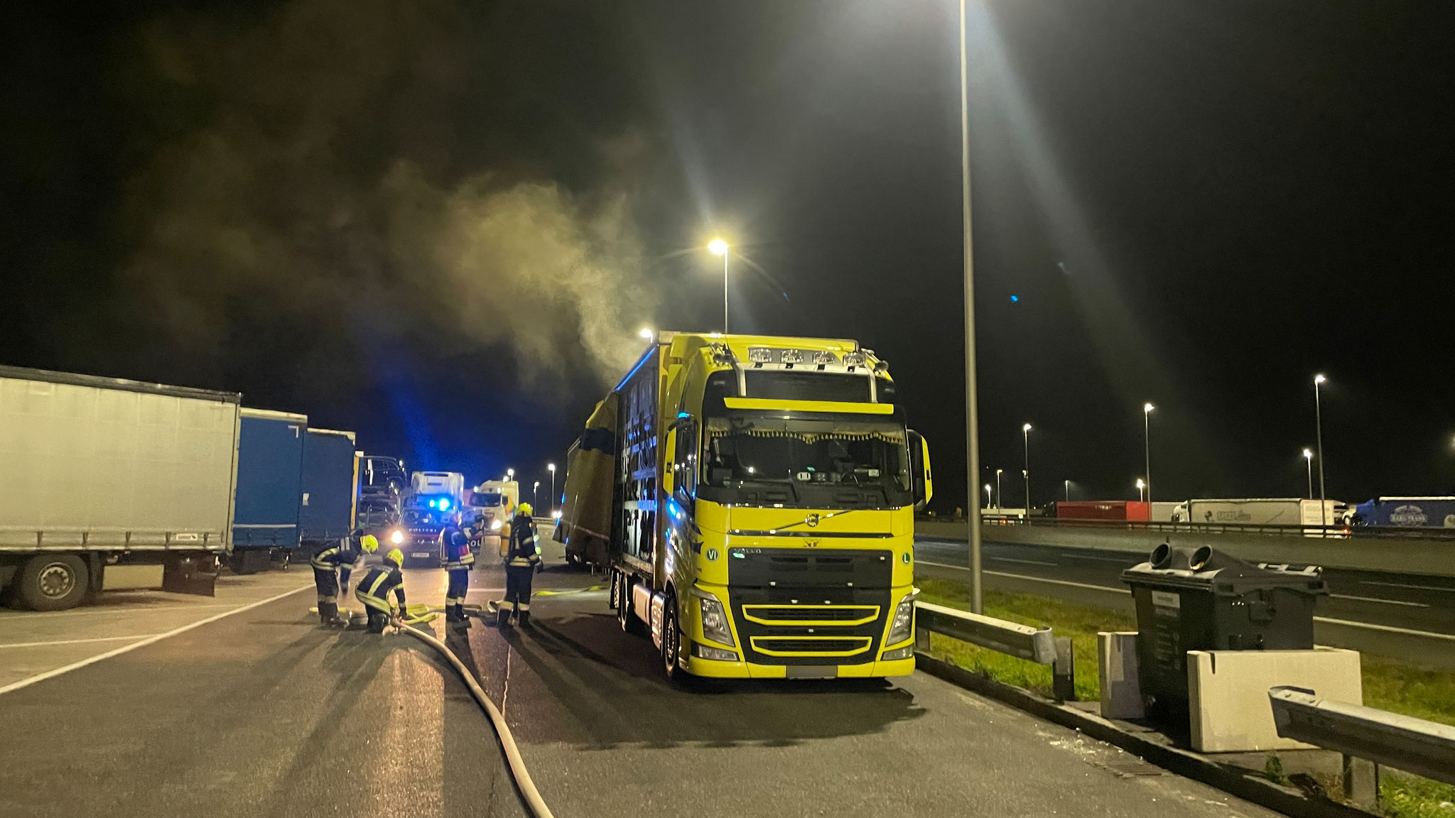 Beim Eintreffen stellte der Einsatzleiter fest, das sich die noch Unbekannte Ladung eines geparkten Lkws. Entzündete, was starke Rauchentwicklung zufolge hatte.
