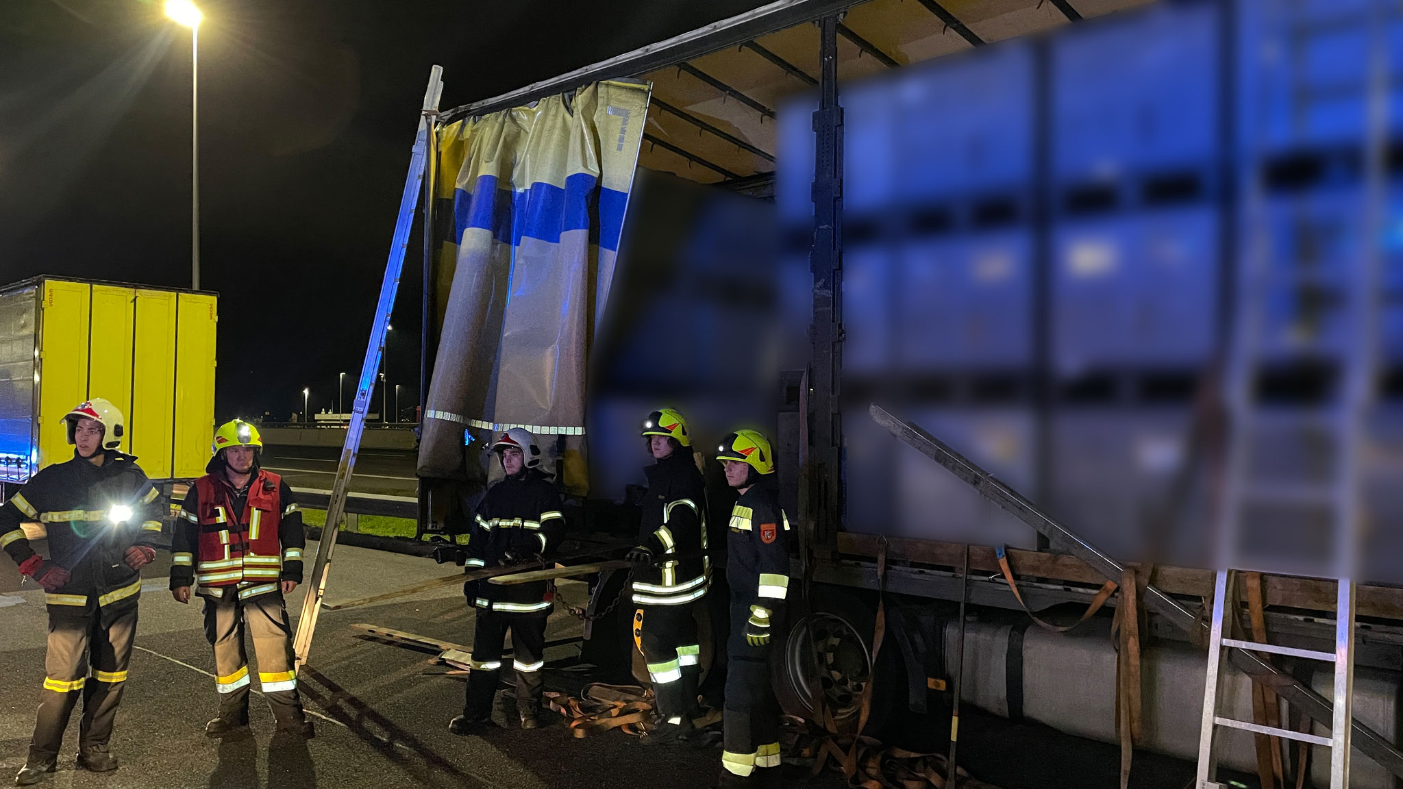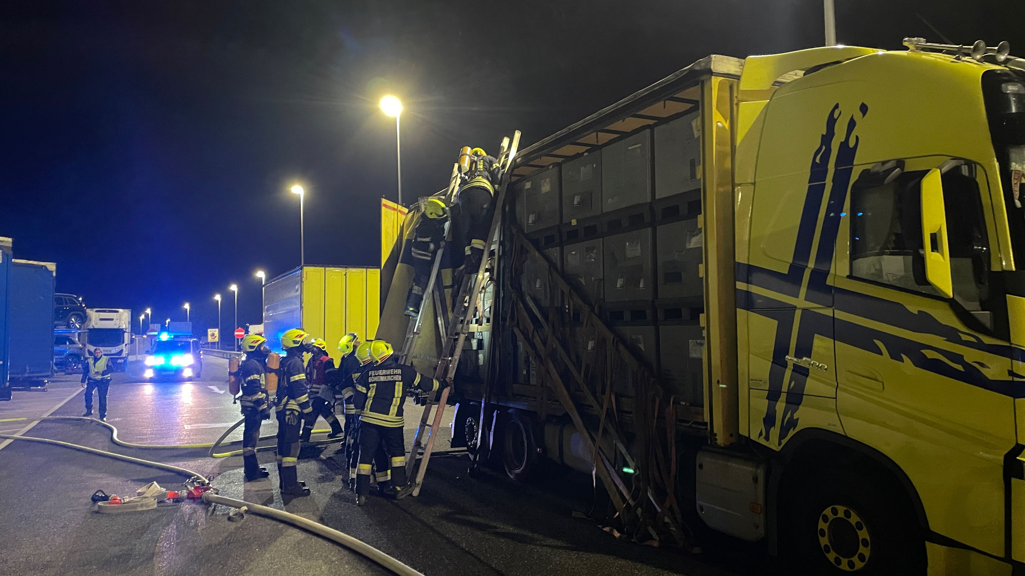 wird. So konnte unverzüglich mit der Brandbekämpfung mittels 2 Hohlstrahlrohren begonnen werden. Gleichzeitig ordnete die Polizei die Totalsperre der A1 für die Dauer der Löscharbeiten an und
