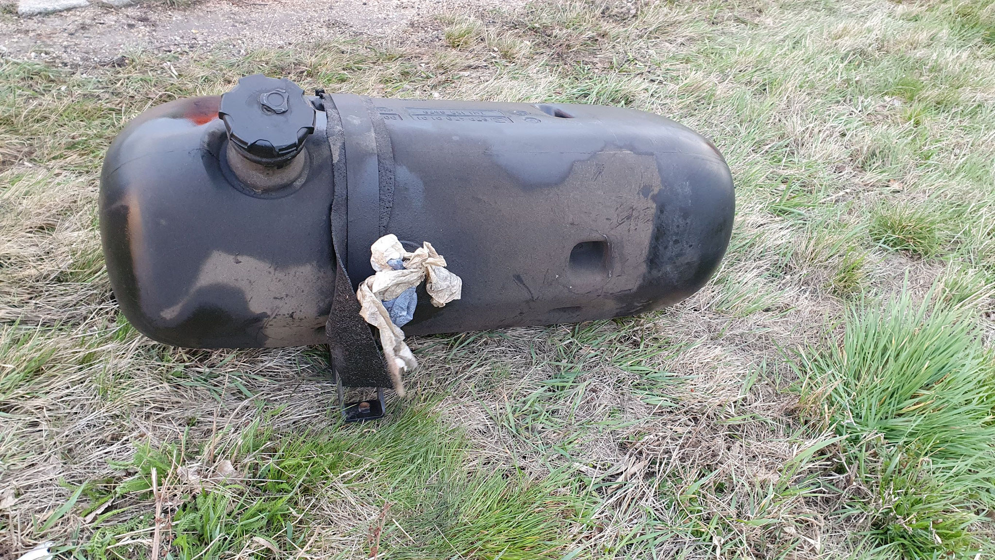 von der Autobahnabfahrt auf der L110 und dann auf der L129 bis nach Bauland eine Öl- bzw. Benzinspur vorhanden war. Nach Bauland konnte am Straßenrand ein Tankbehälter vorgefunden werden.