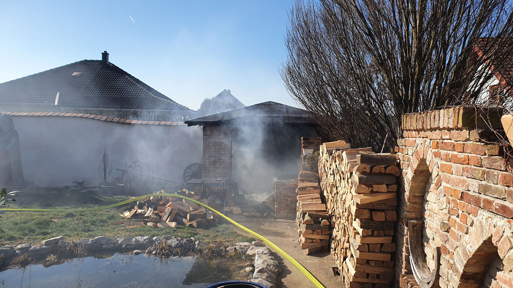 der Gartenhütte und es gab eine starke Rauchentwicklung.
