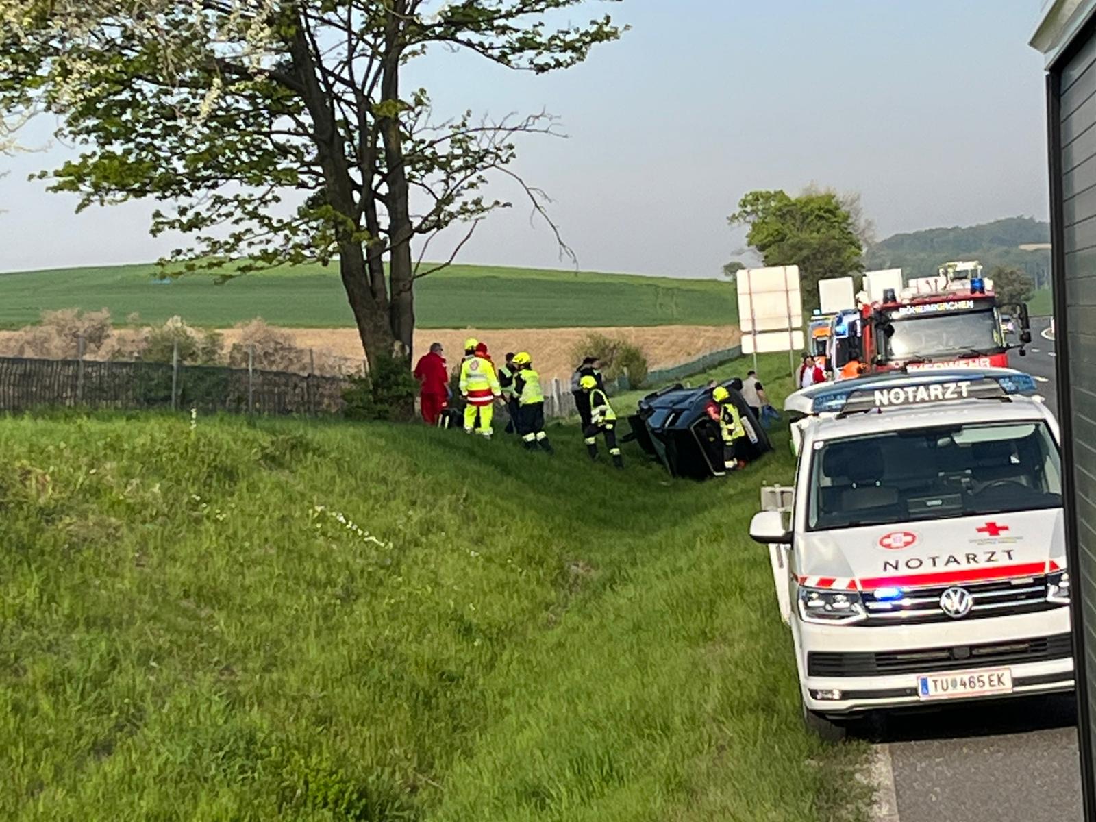 Nachdem keine Betriebsmittel austraten, das Fahrzeug nicht verkehrsbehindernd lag und durch ein anderes Unternehmen geborgen wurde konnte die Feuerwehr Böheimkirchen mit allen Fahrzeugen