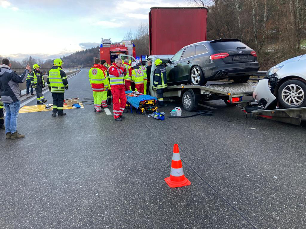 Ausfahrt St. Christophen“ aktualisiert und mitgeteilt, das mehrere Fahrzeuge beteiligt sind.