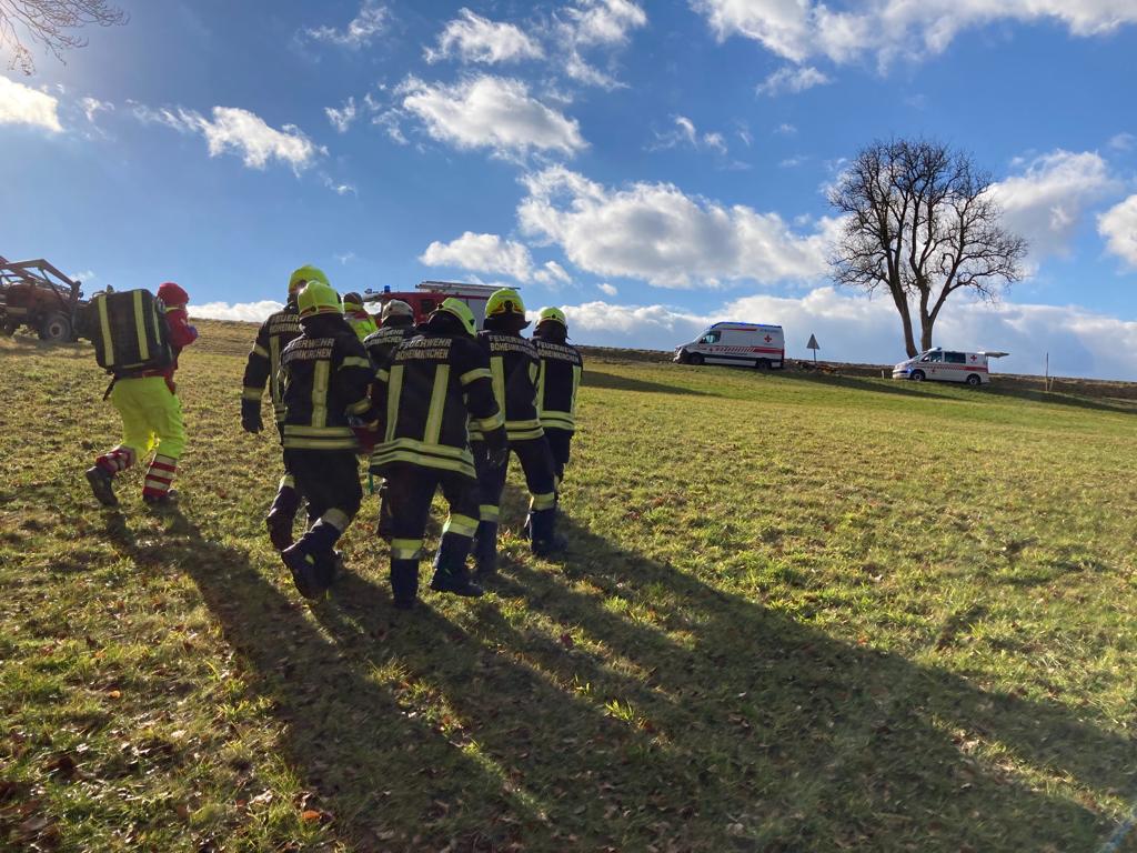 Da sich der Unfall in unwegsamen Gelände ereignete, unterstützen wir die Rettung und transportierten den Verletzten mit der Korbschleiftrage zum Rettungsfahrzeug. Dieser wurde ins Krankenhaus St.