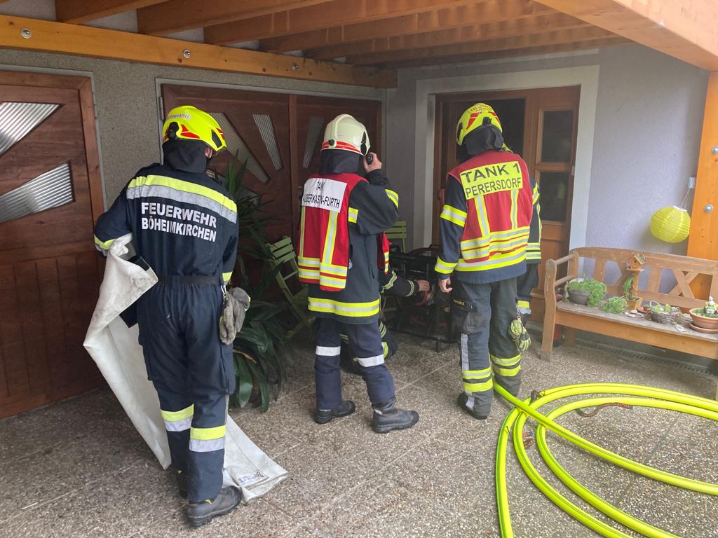 FF Haus befanden, konnten innerhalb weniger Minuten die ersten Einsatzfahrzeuge der FF Böheimkirchen Richtung Brand ausrücken. Beim Eintreffen der Feuerwehr schlugen die Flammen bereits aus dem