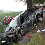 Sofort wurde von uns mittels hydraulischem Rettungssatz mit den Rettungsarbeiten begonnen. Obwohl die Rettung des Verunfallten sehr schnell verlief, konnte vom Notarzt nur noch der Tod des