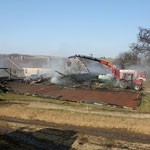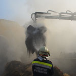 Da durch die ständige Neuentfachung sämtlicher Glutnester, ein vorzeitiges "Brand Aus" nicht in Aussicht stand, wurden die Heu- und Strohballen mit einem Kran vom Dachboden entfernt, in der nebenliegenden Wiese verteilt und sorgfältig immer wieder abgelöscht.