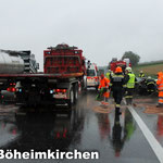 Die Bergung des schwer beschädigten LKW übernahm eine private Abschleppfirma, der PKW war noch fahrtüchtig.
