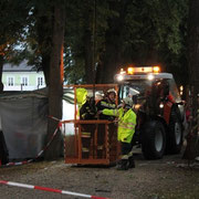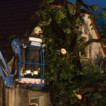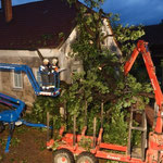 Von der Firma Elektro Brandstetter wurde uns sofort und unentgeltlich ein Hubsteiger zur Verfügung gestellt, der das schonende Entfernen des Baumes von der Hausmauer ermöglichte.