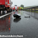 Die gesamte Autobahn war in beiden Richtungen für kurze Zeit gesperrt, sodass wir uns einen Überblick über die gesamte Schadenslage machen konnten. Glücklicherweise befanden sich keine Personen mehr in den Fahrzeugen, der PKW wurde nur leicht beschädigt, beim LKW wurde der Treibstofftank aufgerissen und Diesel floss aus.