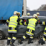 Kurz nach dem Busunfall am 07. Februar, wurden wir zu einem LKW Unfall mit vermutlich eingeklemmter Person, nur kurz nach der ersten Unfallstelle, gerufen.