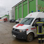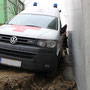 Ein Fahrzeug des Rettungsdienstes war bei einem Rettungseinsatz in eine Baugrube gerutscht und steckengeblieben. Vor der Fahrzeugbergung wurde der schwerverletzte Patient von einem anderen Rettunsauto aufgenommen und ins nächstgelegene Krankenhaus transportiert.