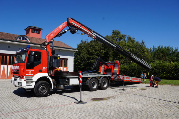 Gemeinsam mit der Freiwilligen Feuerwehr Untergrafendorf stellten wir den Kids unser Wechselladefahrzeug, unser Rüstfahrzeug und das neue Hilfeleistungsfahrzeug der FF Untergrafendorf vor. Sowohl in den Löscheinsatz, als auch in den Technischen Einsatz konnten die 15 Kinder hineinschnuppern.