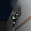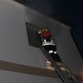 Für die weiteren Löschmaßnahmen wurde unter Atemschutz eine Dachöffnung mit der Motorsäge geschaffen und mit dem Arbeitskorb und dem WLF ein Außenangriff gestartet.