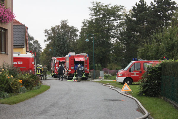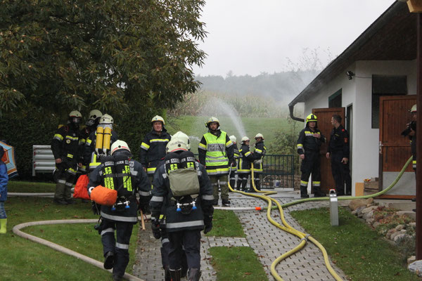 Die Ausführende Feuerwehr Weisching legte folgendes Übungsszenario fest: Am Dachboden eines Wohngebäudes ist ein Brand ausgebrochen, mehrere Personen werden vermisst.