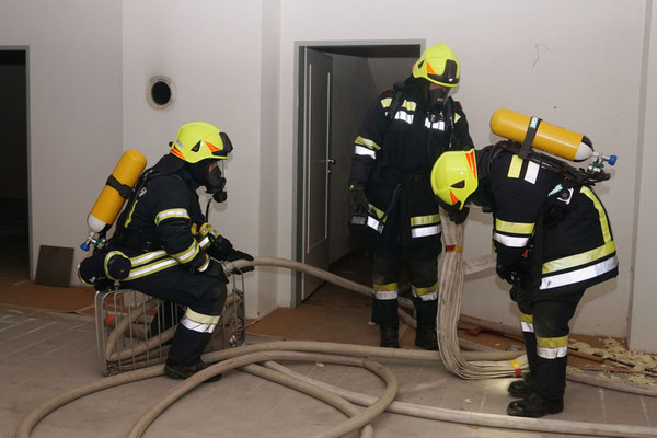 Atemschutztrupps der einzelnen Feuerwehren mit der Menschenrettung beginnen.