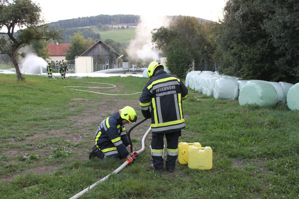 Produktenleitung mit einem Schaumteppich vor dem Brand zu schützen.