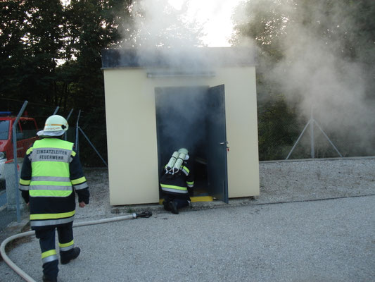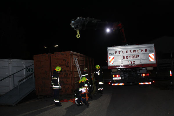 Die Übungsannahme gestaltete sich wie folgt: Im MSR (Mess-, Steuer- und Regel-) Container ist ein Brand ausgebrochen. Die Aufgabe der FF Böheimkirchen - Markt bestand darin, die freiliegende