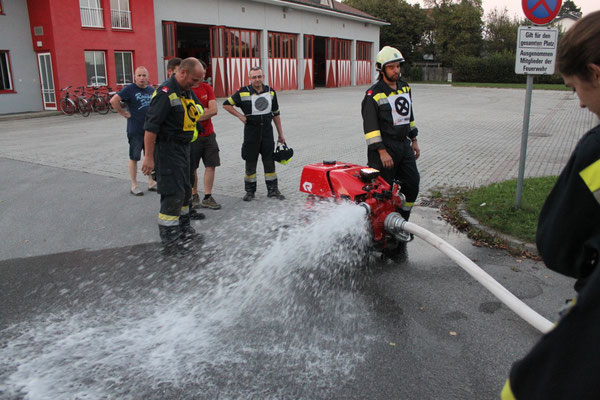 sowohl das Ansaugen von einem natürlichen Gewässer, als auch das Verwenden der TS als Druckförderer an einem Hydranten beübt. Das Ansaugen an einer Ortsfesten Leitung wurde nur theoretisch