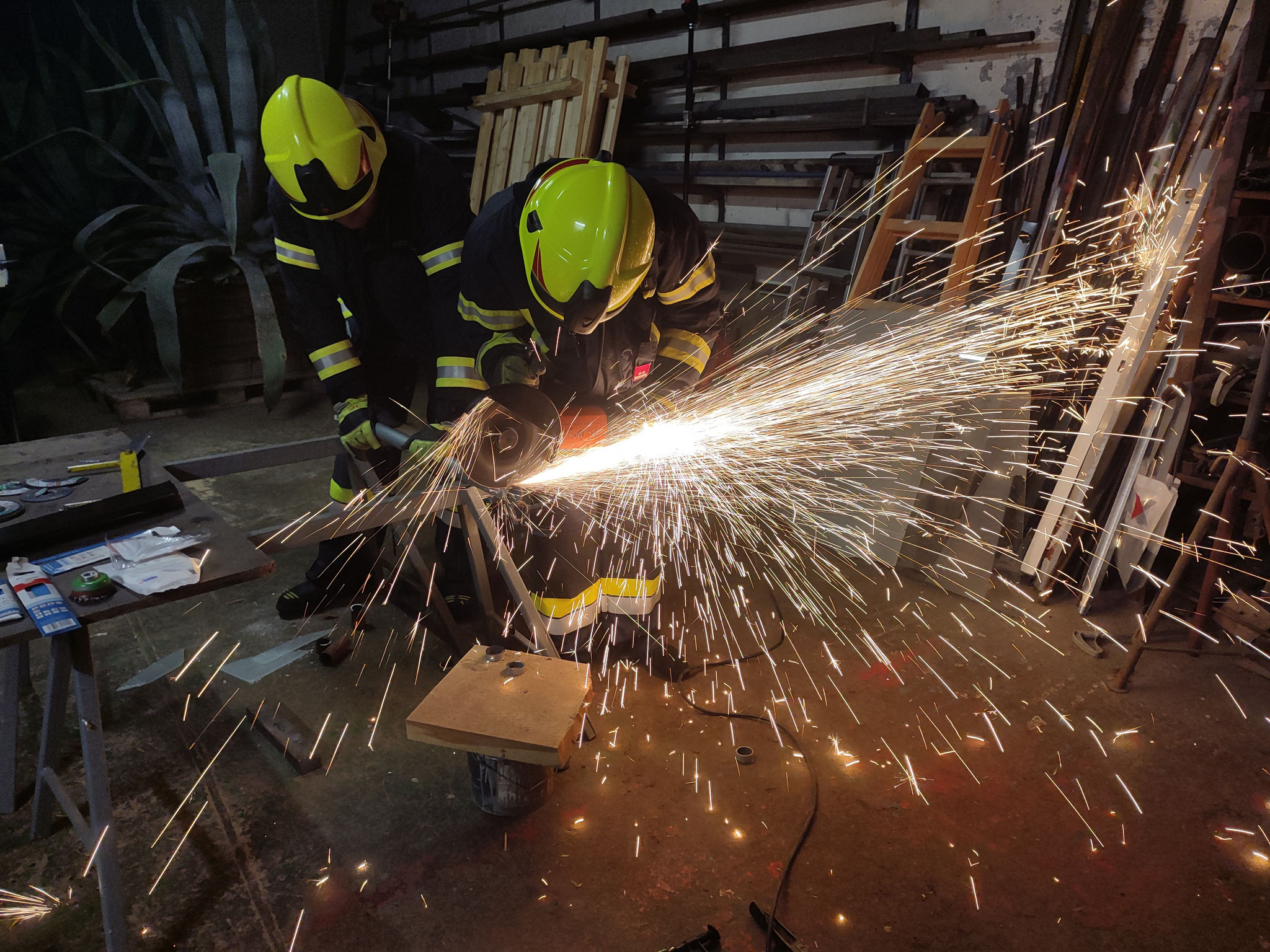 Die zweite Übung fand intern statt und widmete sich dem Thema „Türöffnung“. Dabei lernten wir einige Techniken, wie man mit den verschiedensten Werkzeugen wie der Feuerwehraxt, dem Brecheisen