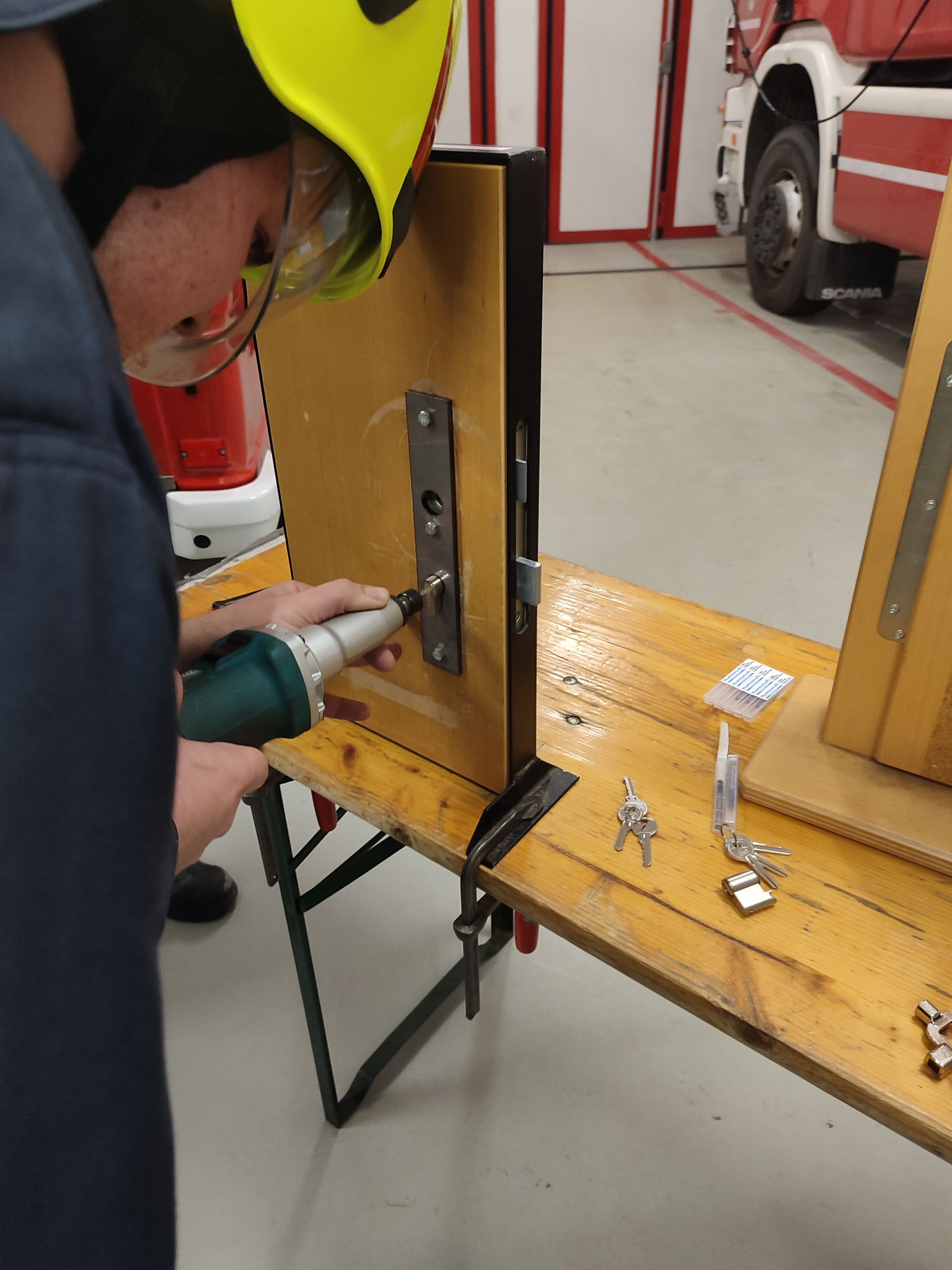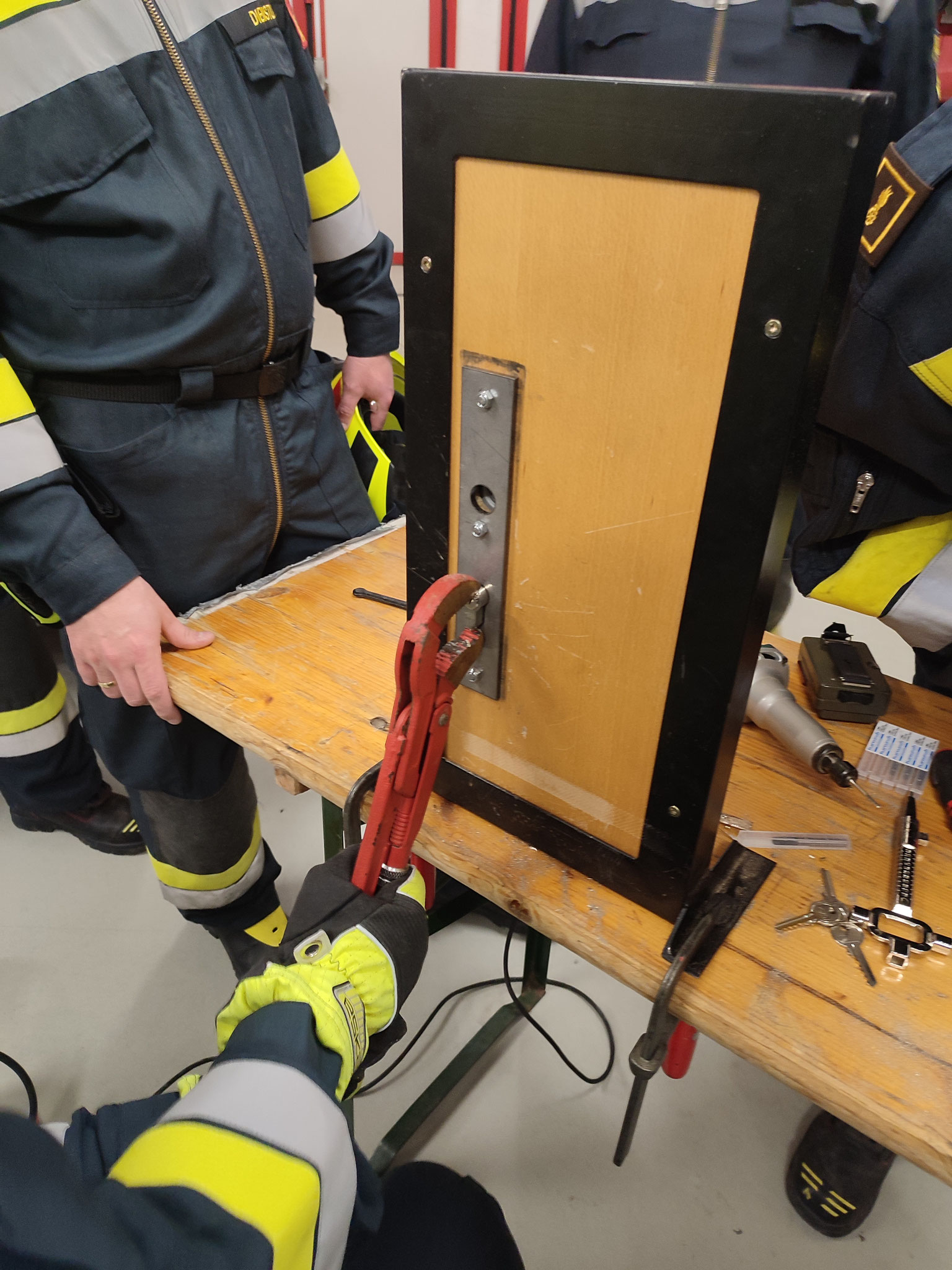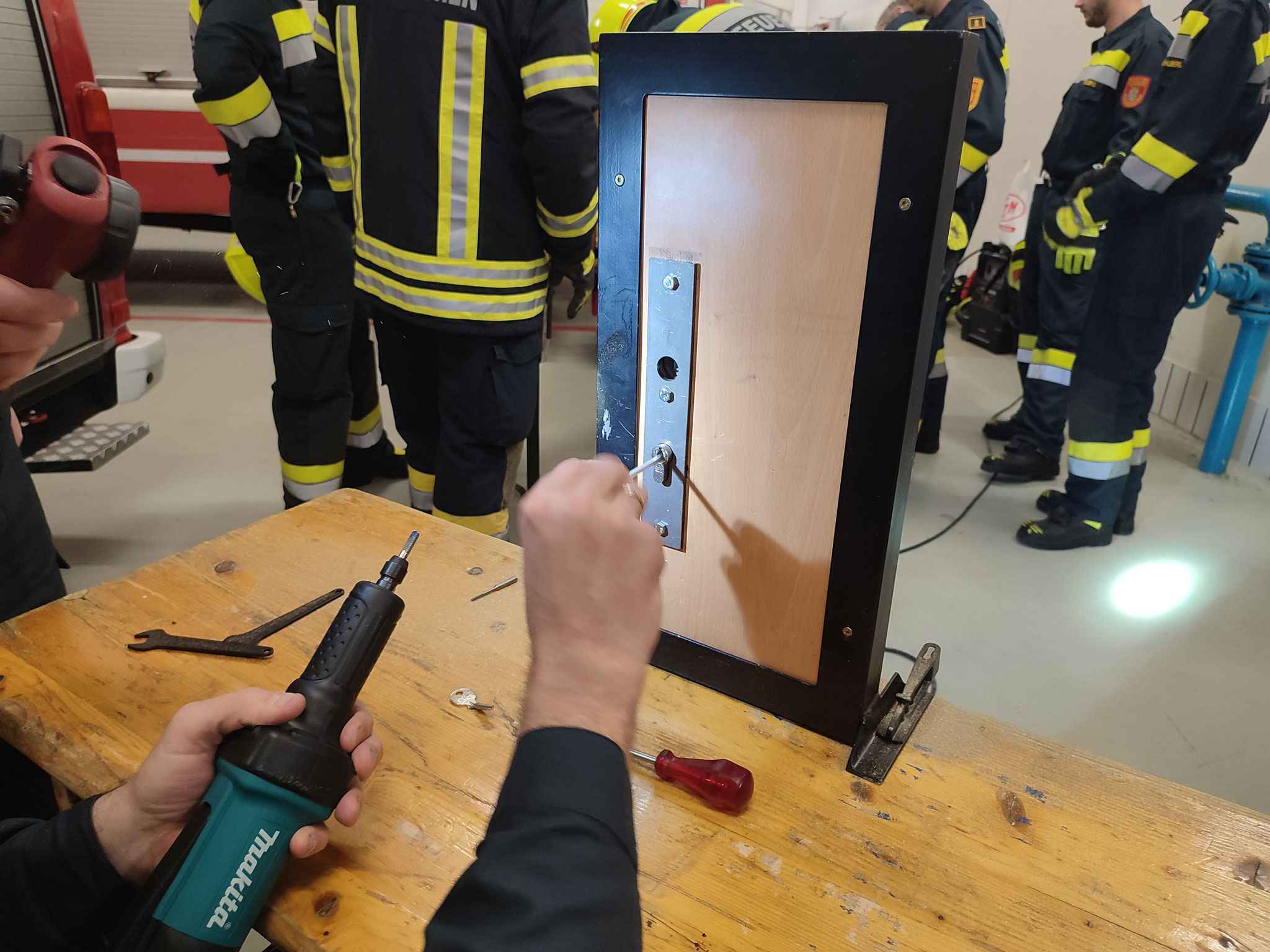 Am 26.02. stand bei uns eine Schulung zur Tür- und Fensteröffnung an. Neben dem Öffnen eines gekippten Fensters lernten wir auch das Aufbohren und Aufbrechen eines Schließzylinders.
