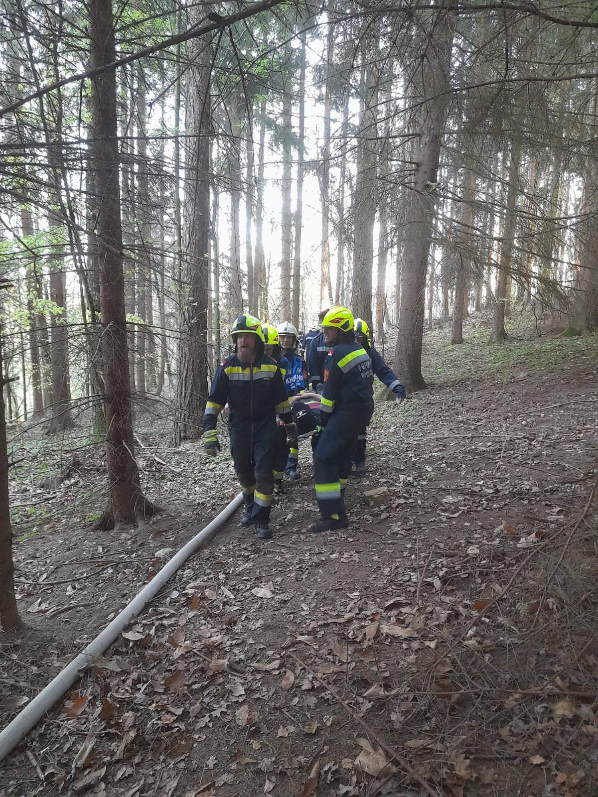 lokalisieren. Anschließend konnten sie mithilfe einer Korbschleiftrage aus dem Wald gerettet werden. Unser TLF mit einer Besatzung von 1 zu 6 war Teil des Tanklöschzuges im 2. Zug im 17.