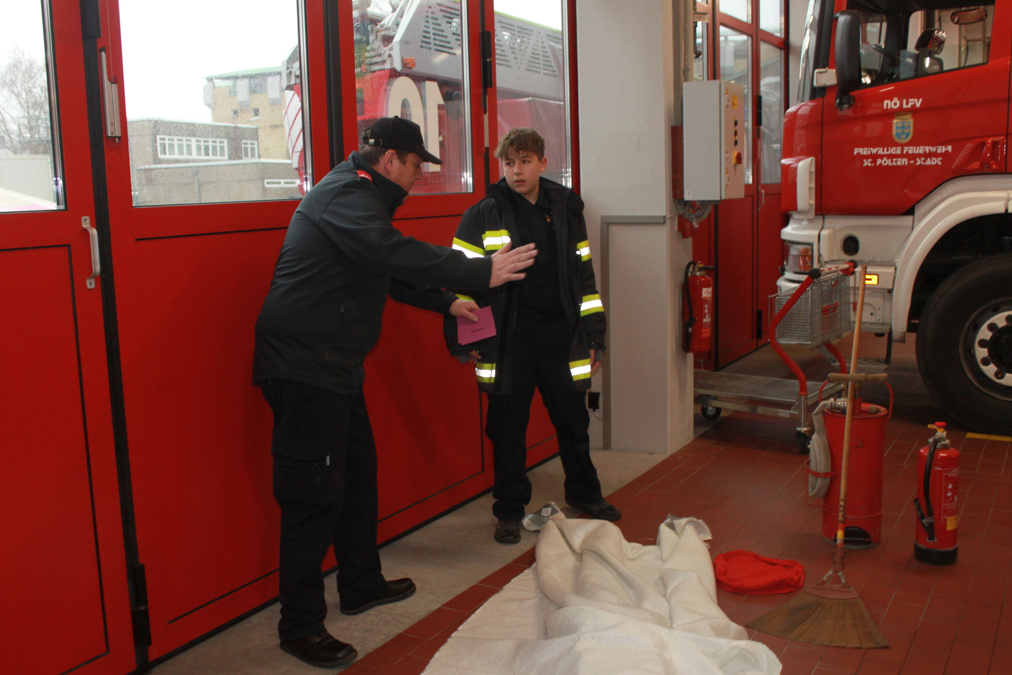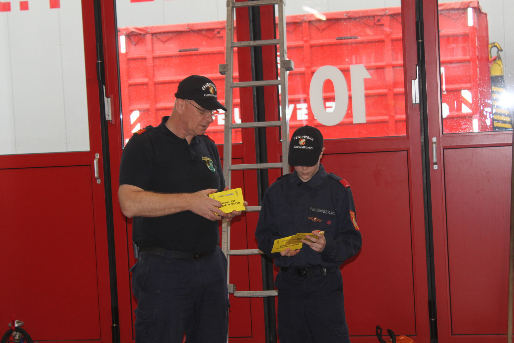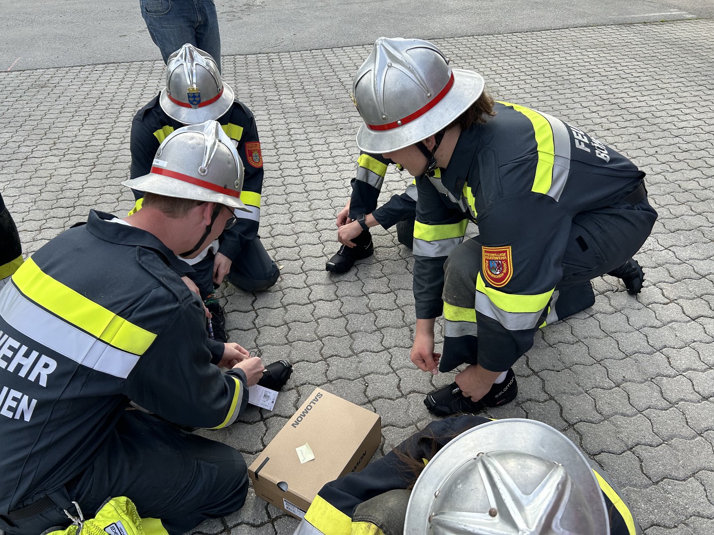 Kommandant Karl Stremeilweger und Kommandantstellvertreter Johannes Siebenhandl nicht fehlen – vor unserer letzten Übung wurden die Schuhe überreicht und gleich „eingeweiht“.
