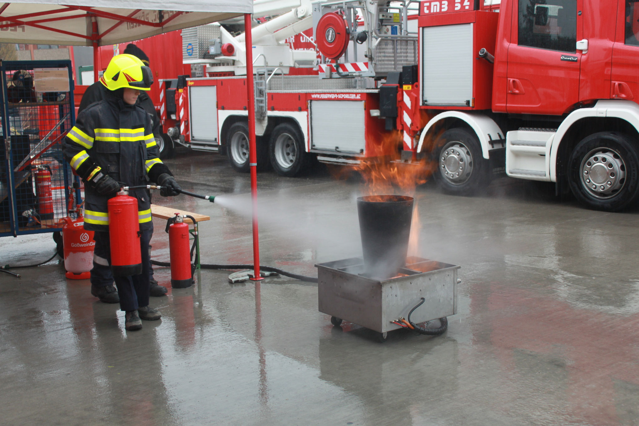 Kleinlöschgeräte und Sicheres verhalten unter Beweis stellen.